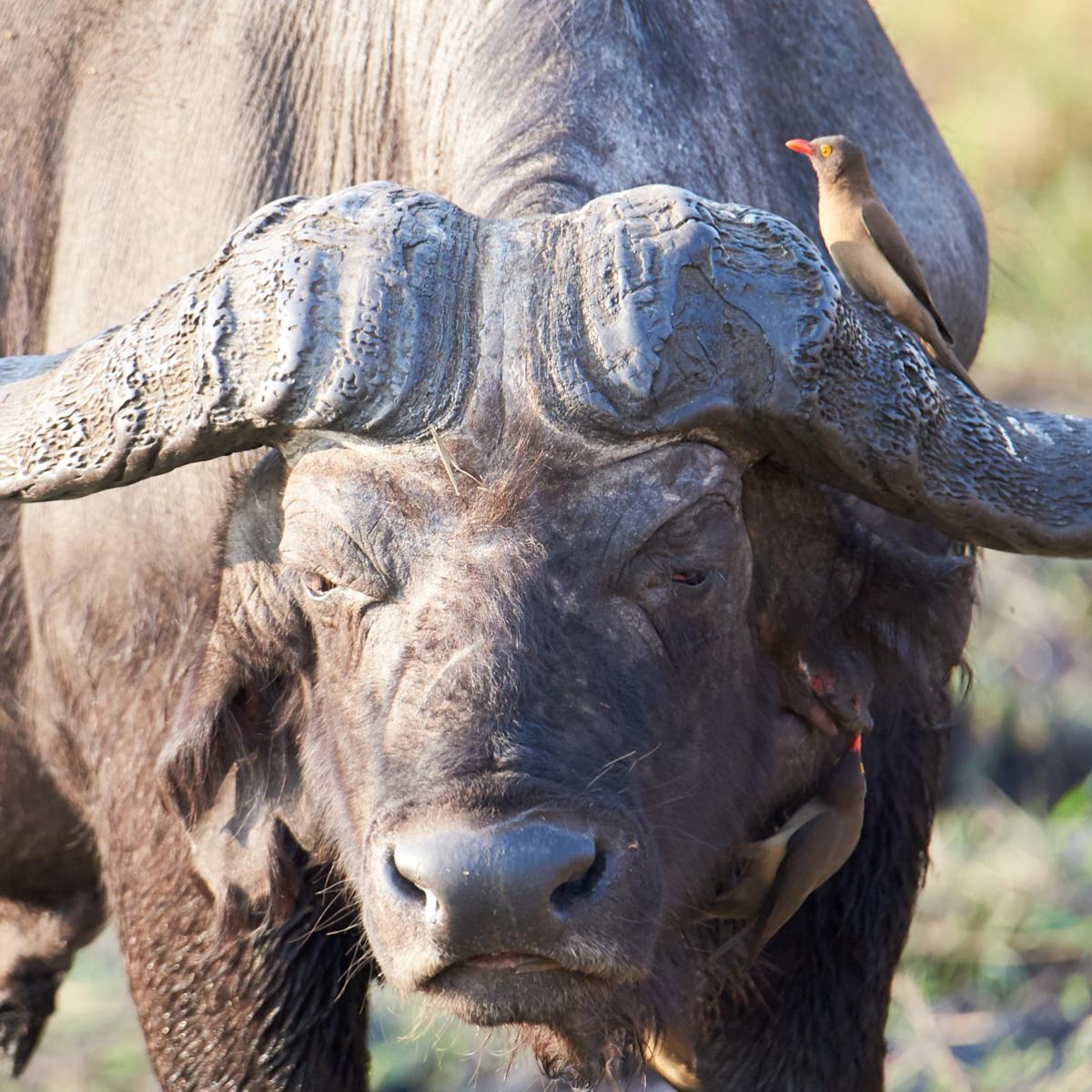 Yellow-billed oxpecker and buffalo | Chobe National Park | Botswana